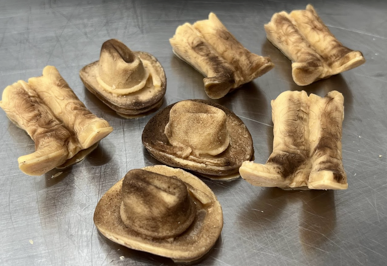These wax melts look just like little mini cowboy boots & hats! They are scented in really nice suede embers fragrance. They are tan & brown in color.