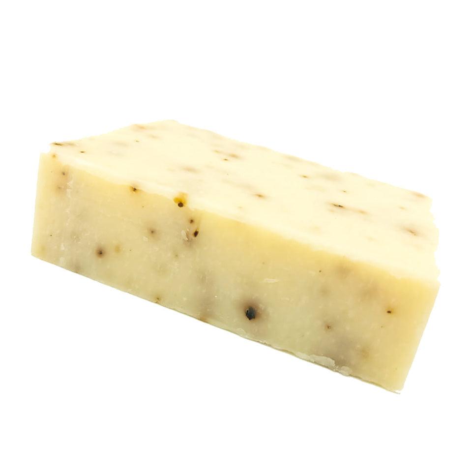 -Saponified Oils of (Olive, Soy, Coconut, Canola, Sunflower), Shea Butter, Natural Fragrance, & Iron Bean Coffee