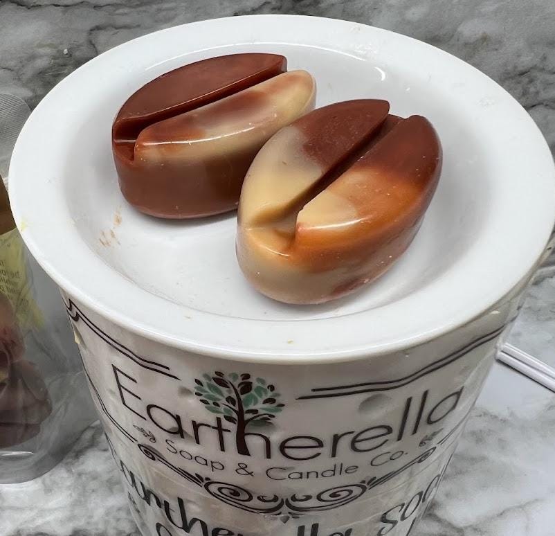 These are coffee scented wax melts in the shape of coffee beans! These smell just like actual coffee!!