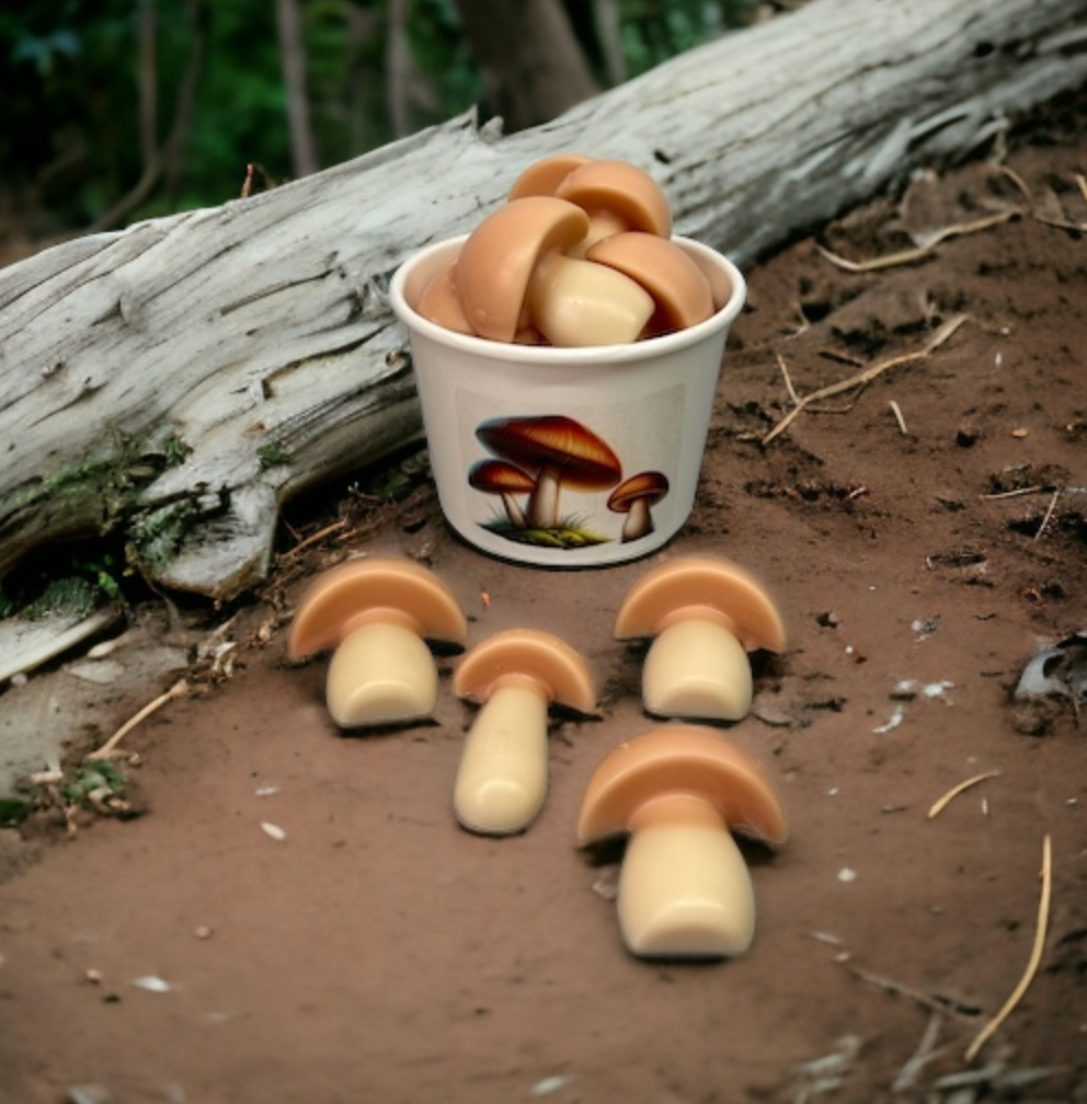 These wax melts look just like mushrooms! They are scented in a sandalwood fragrance.