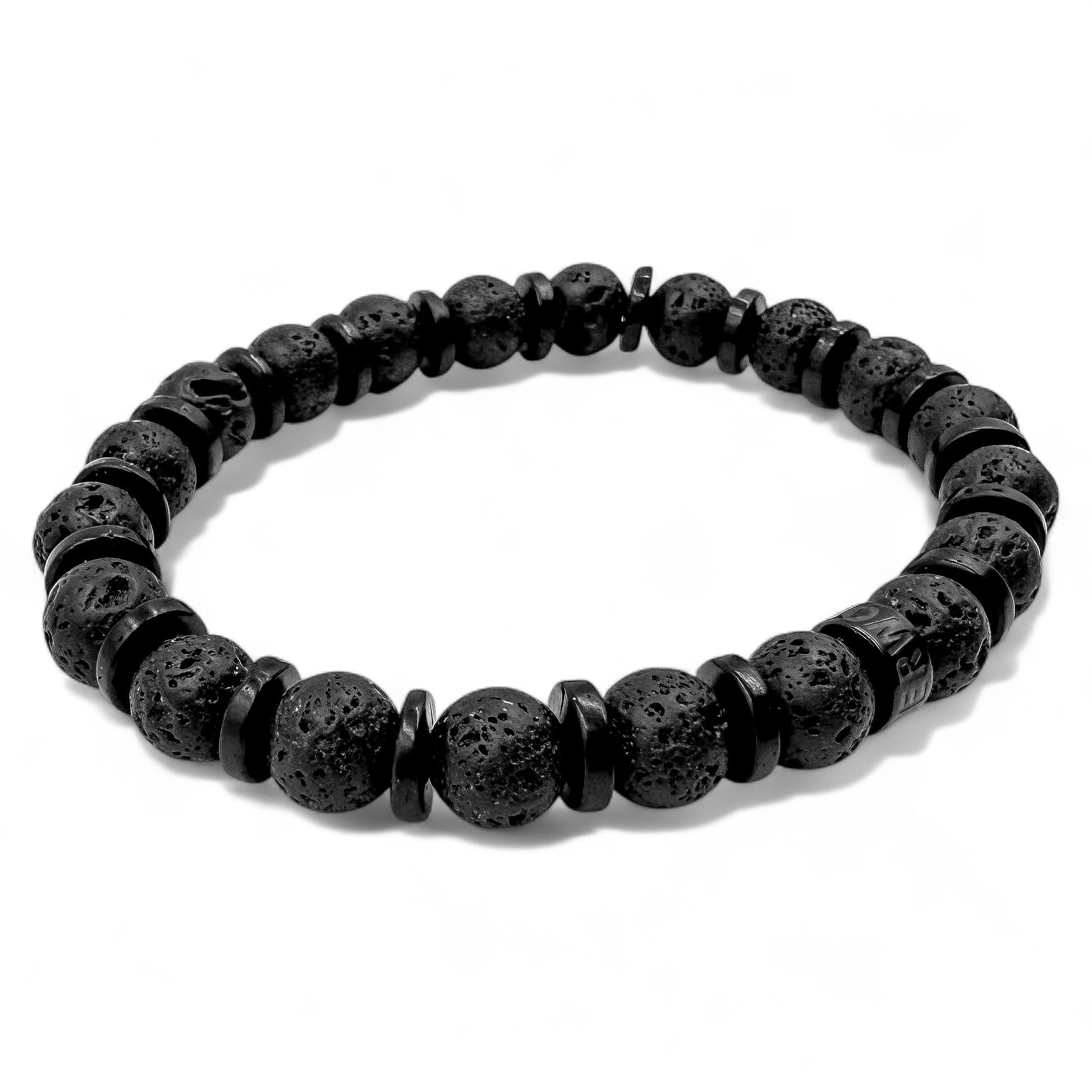 Built for those who thrive in the heat and move with quiet intensity, the Volcanic Midnight bracelet blends natural power with modern edge. Handcrafted with raw, porous lava rock beads and sleek blackwood, this bracelet delivers a bold, earthy texture that’s both rugged and refined. A black stainless steel spacer—engraved with the EVERWOOD mark—pulls it all together with a clean, tactical finish.