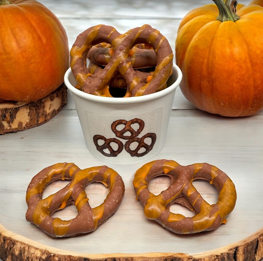 Pretzel wax melts! These are scented in a pumpkin pretzel latte fragrance and drizzled with orange icing! These are all hand poured in small batches, so colors may vary slightly from batch to batch.