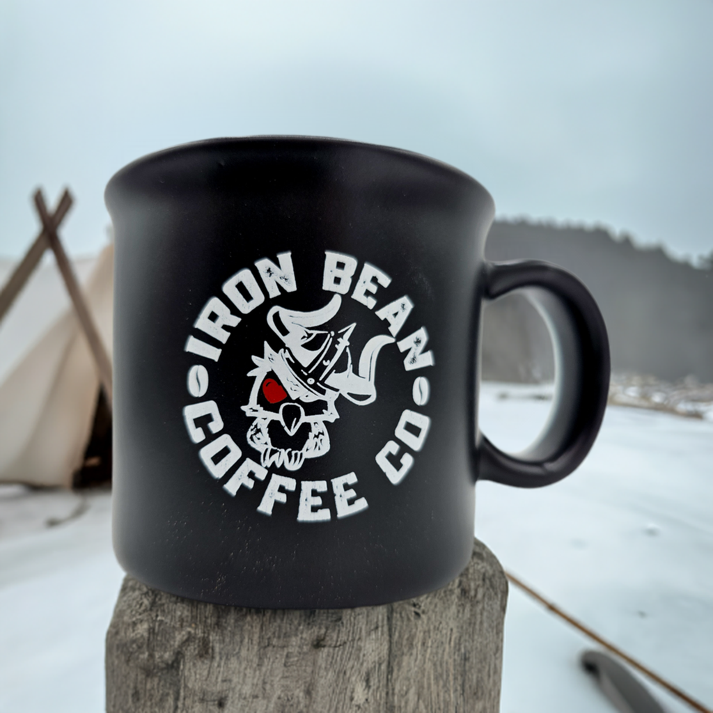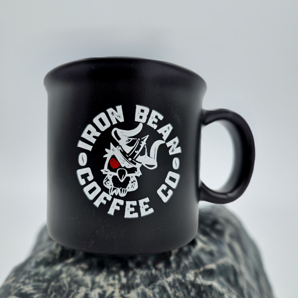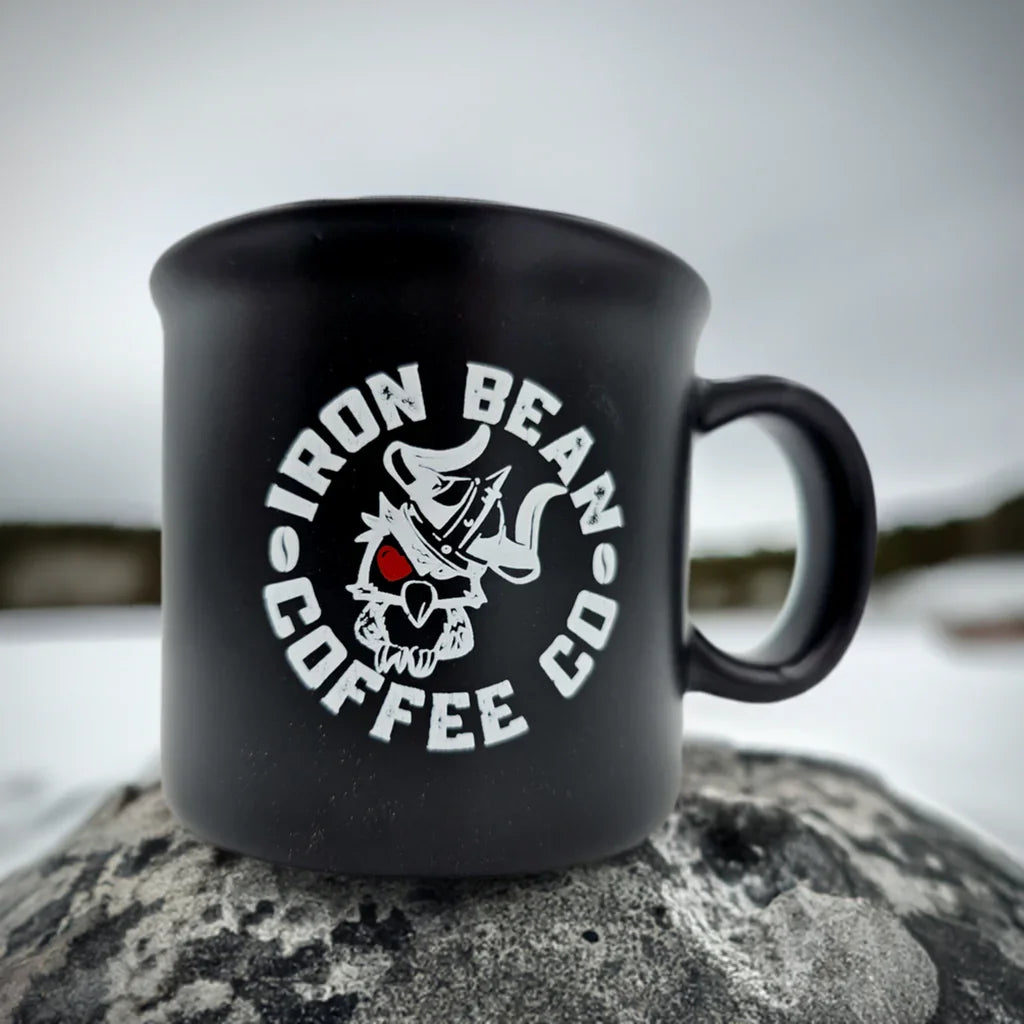 Wake up and smell the coffee with The Dylan Camper! This IRON BEAN COFFEE Ceramic Mug holds a generous 14oz and is proudly made in the USA. Get your caffeine fix in style with this Short and Wide Mug, perfect for your favorite brew. (Hand-wash only, because who needs extra dishes to do?)